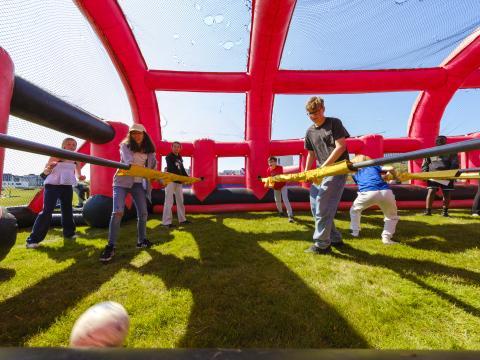 Okkar ungu 12–14 ára nemendur nutu sín í fjölbreyttum útileikjum og uppblásnum leiktækjum eins og teygjubraut, fótboltavöll og fussball sem vakti mikla lukku.